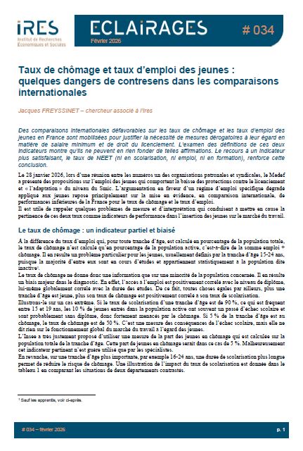 L’Institut de recherches économiques et sociales (Ires) est une association au service des organisations syndicales représentatives des travailleurs. Sa fonction est de répondre aux besoins qu’elles expriment dans le domaine de la recherche économique et sociale.